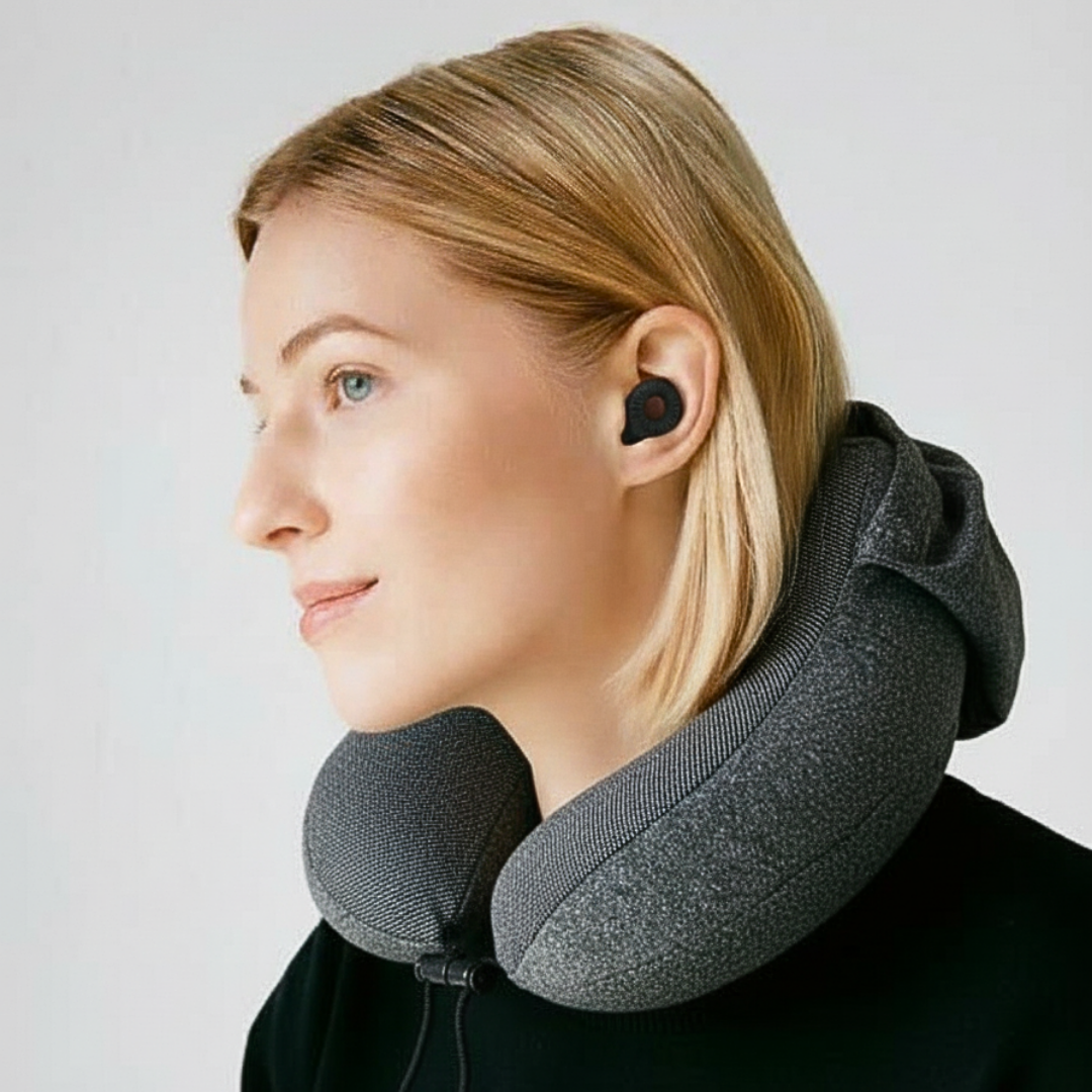 כרית צוואר עם קפוצ'ון + זוג אטמי אוזניים | Travelle Solo Kit