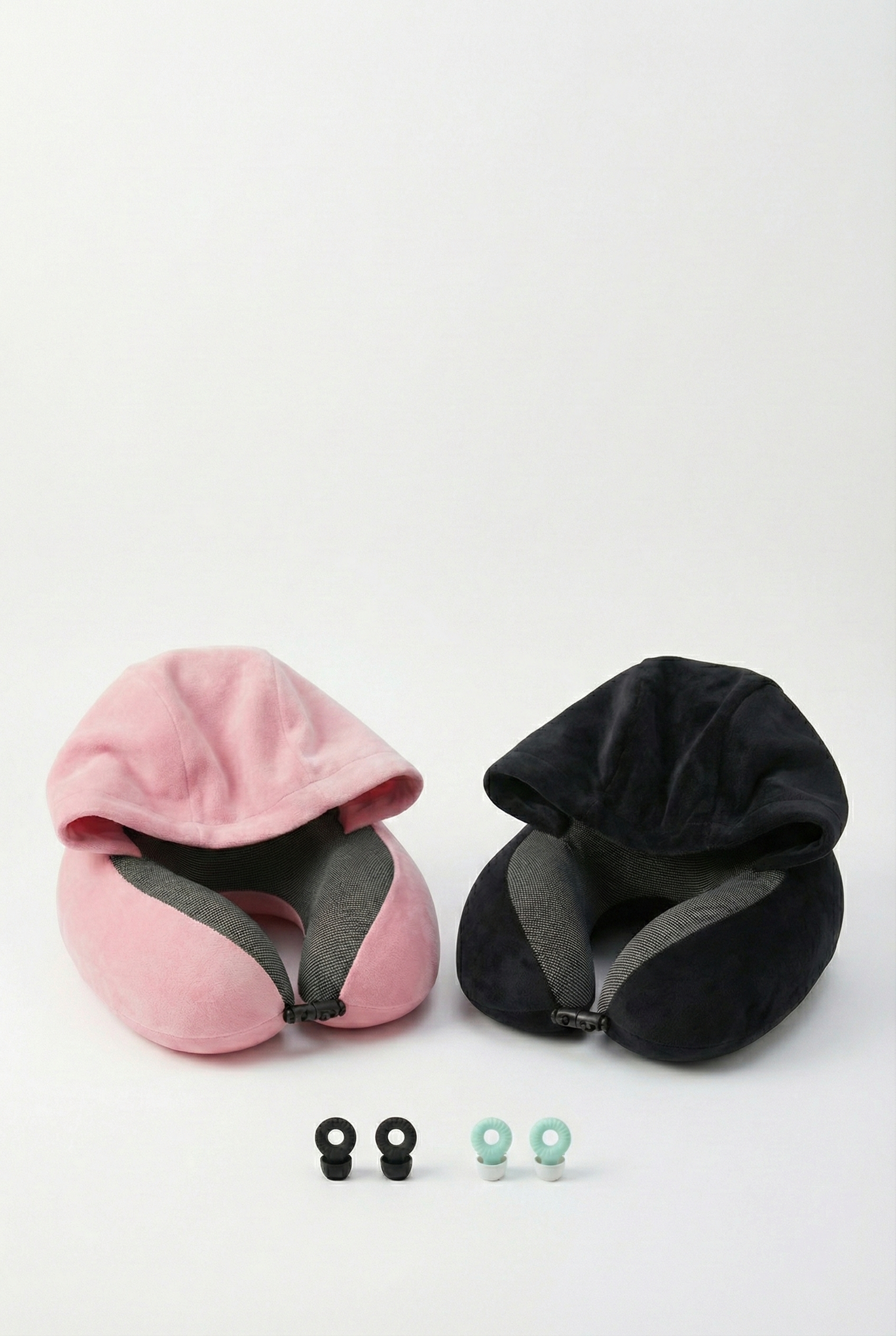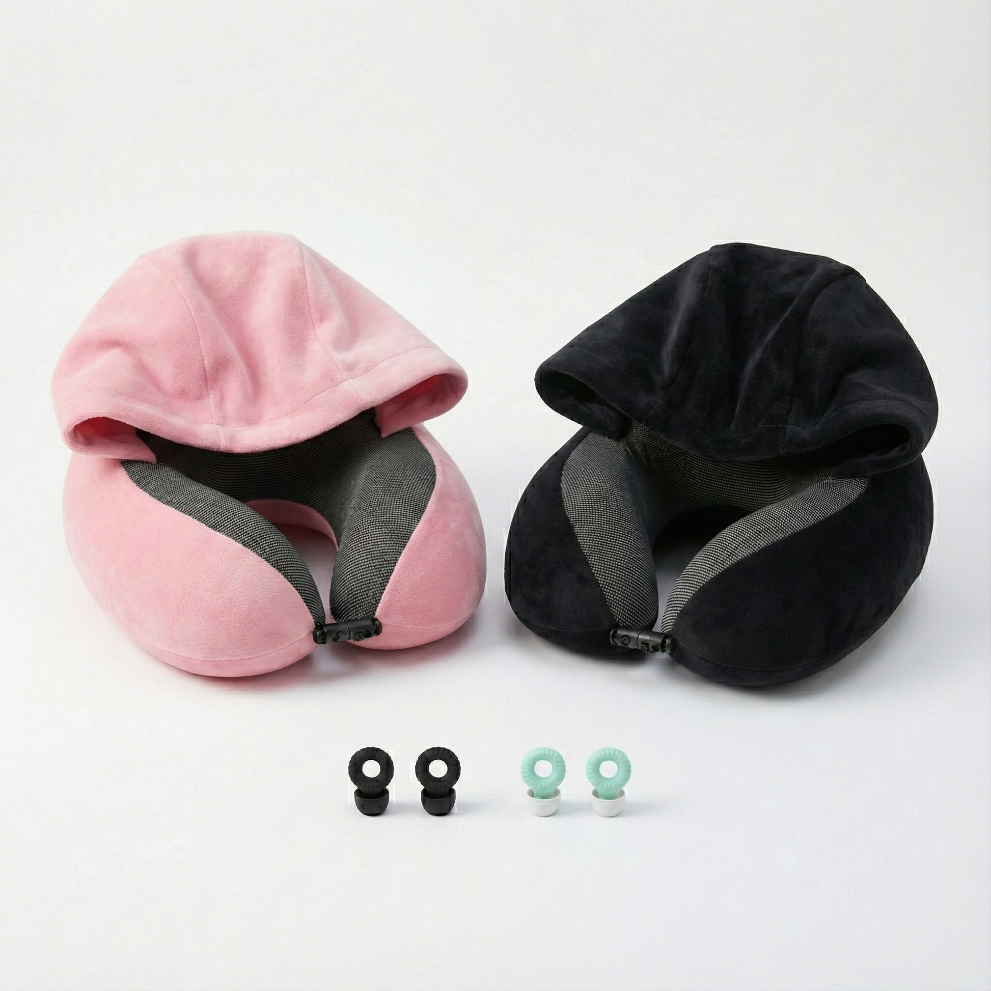 כרית צוואר עם קפוצ׳ון ואטמי אוזניים, כדי לעזור לכם ליהנות מחוויית מנוחה נוחה, שקטה ופרטית יותר בדרך